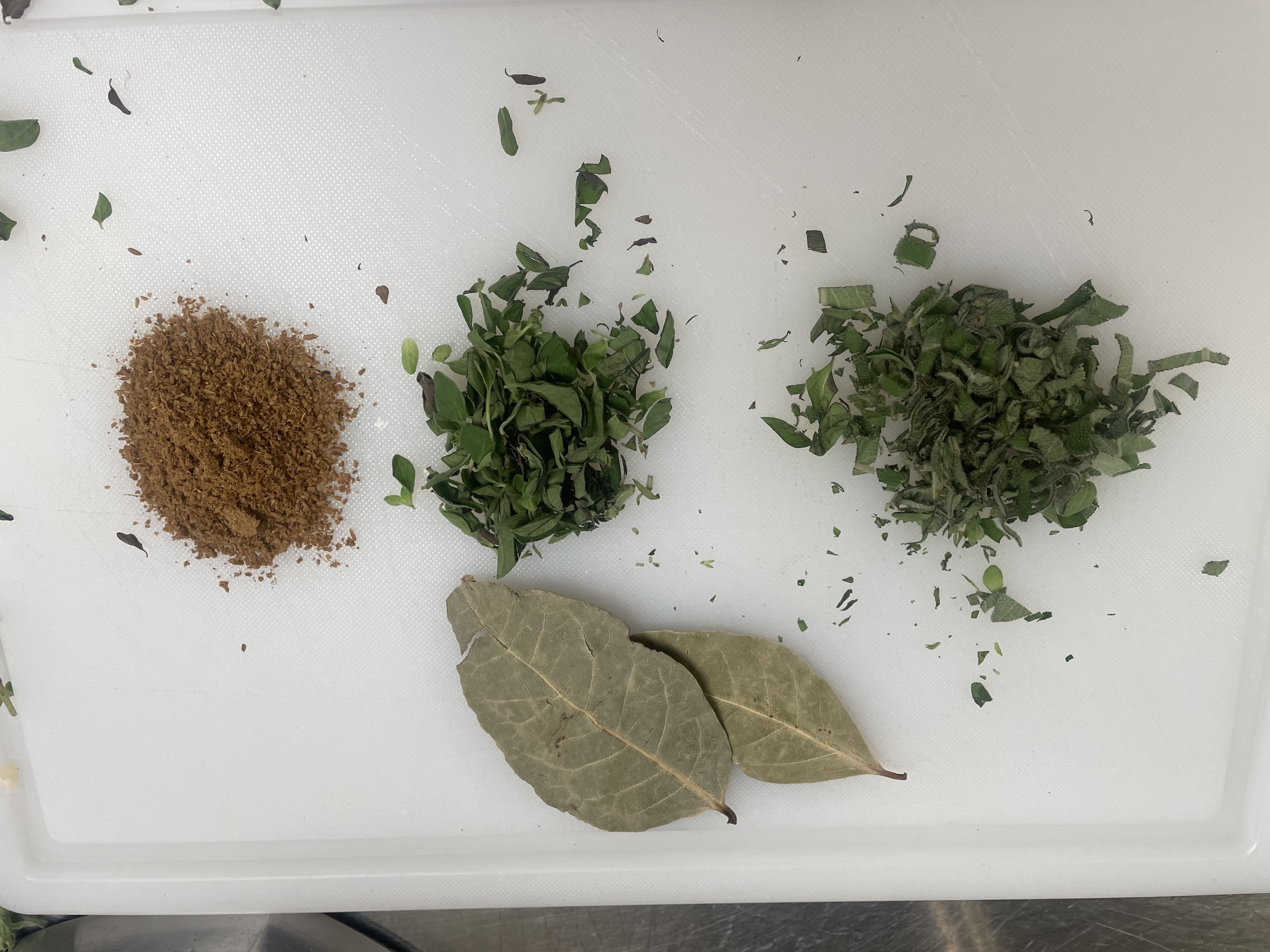 Add the spices (Bay Laurel, Crushed Cumin Seed, Oregano, and Sage) to the pot and cook for hours (add masa disolved in water if you want it thicker)