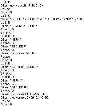 normal distribution functions, the program NORM organizes them so you can